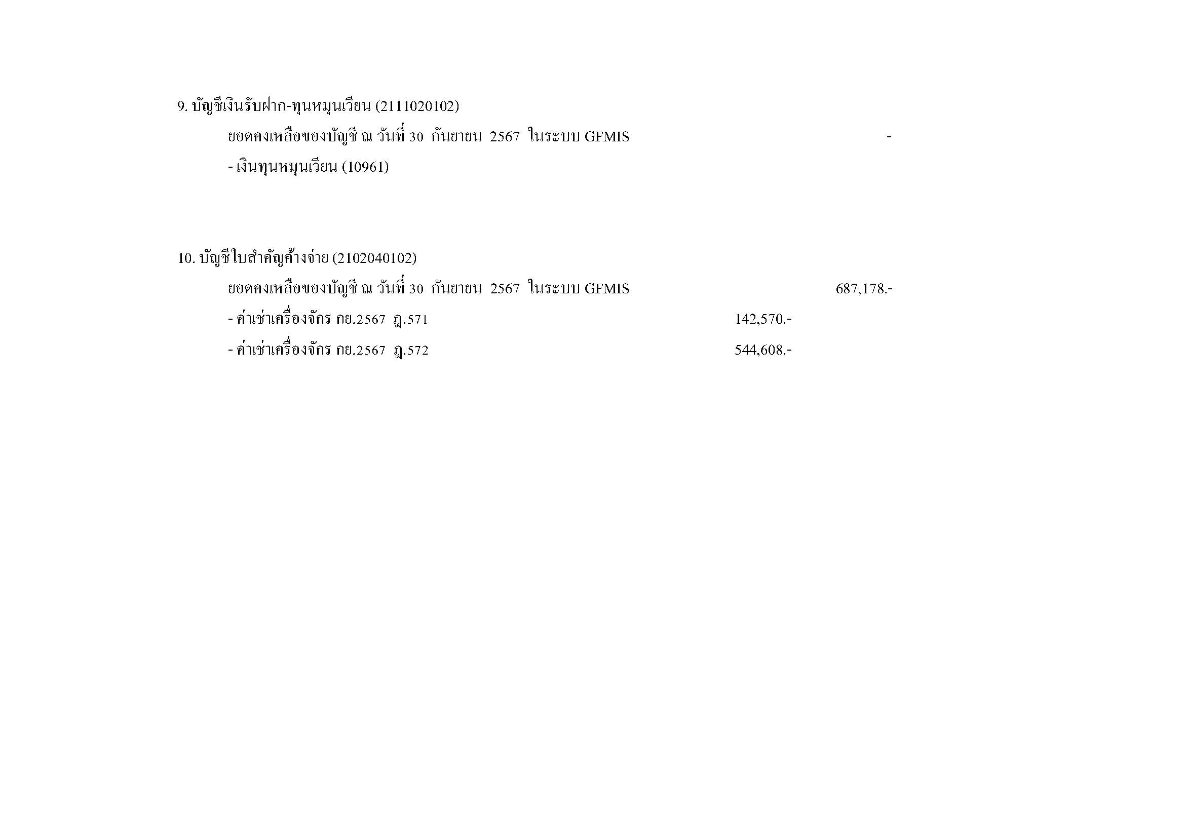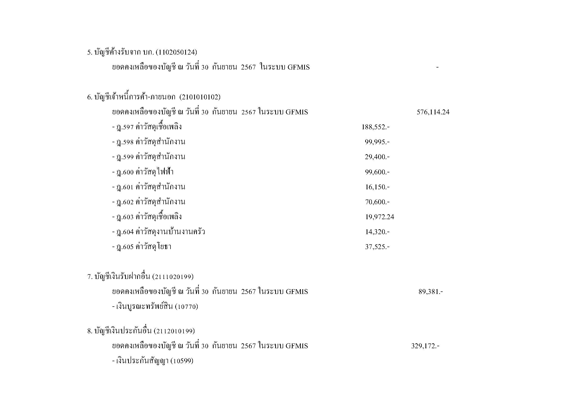 เนื้อหาเพจ : รายละเอียดประกอบรายการบัญชีที่สำคัญของงบทดลองประจำเดือนกันยายน 2567