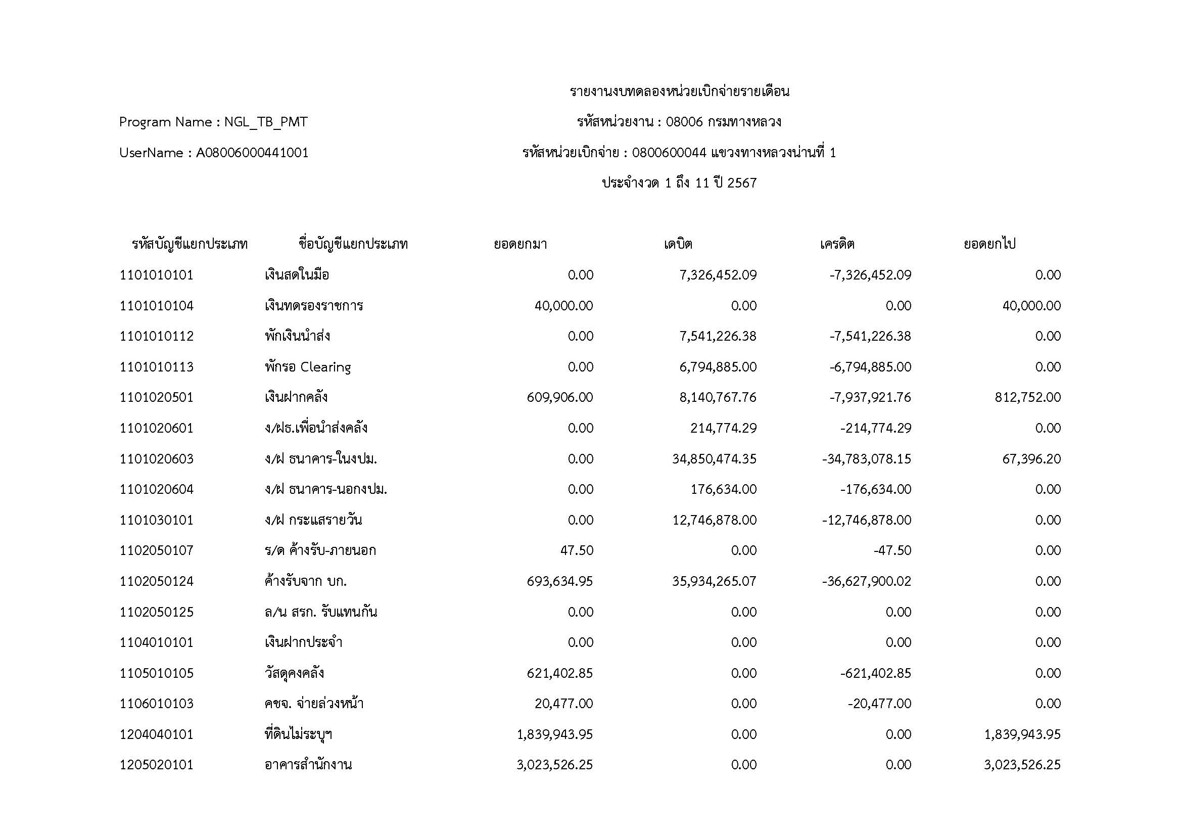 รายงานงบทดลองหน่วยเบิกจ่ายรายเดือน ส.ค.2567