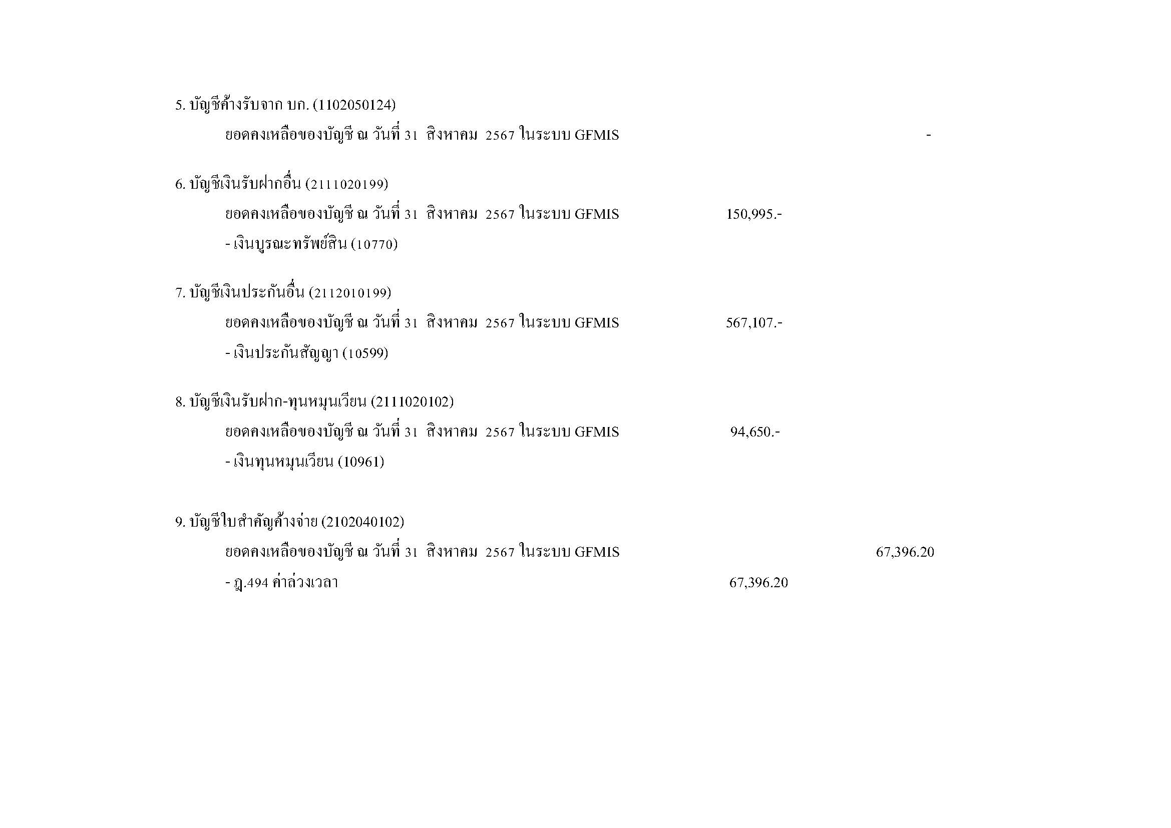 รายละเอียดประกอบรายการบัญชีที่สำคัญของงบทดลองประจำเดือนกันยายน 2567