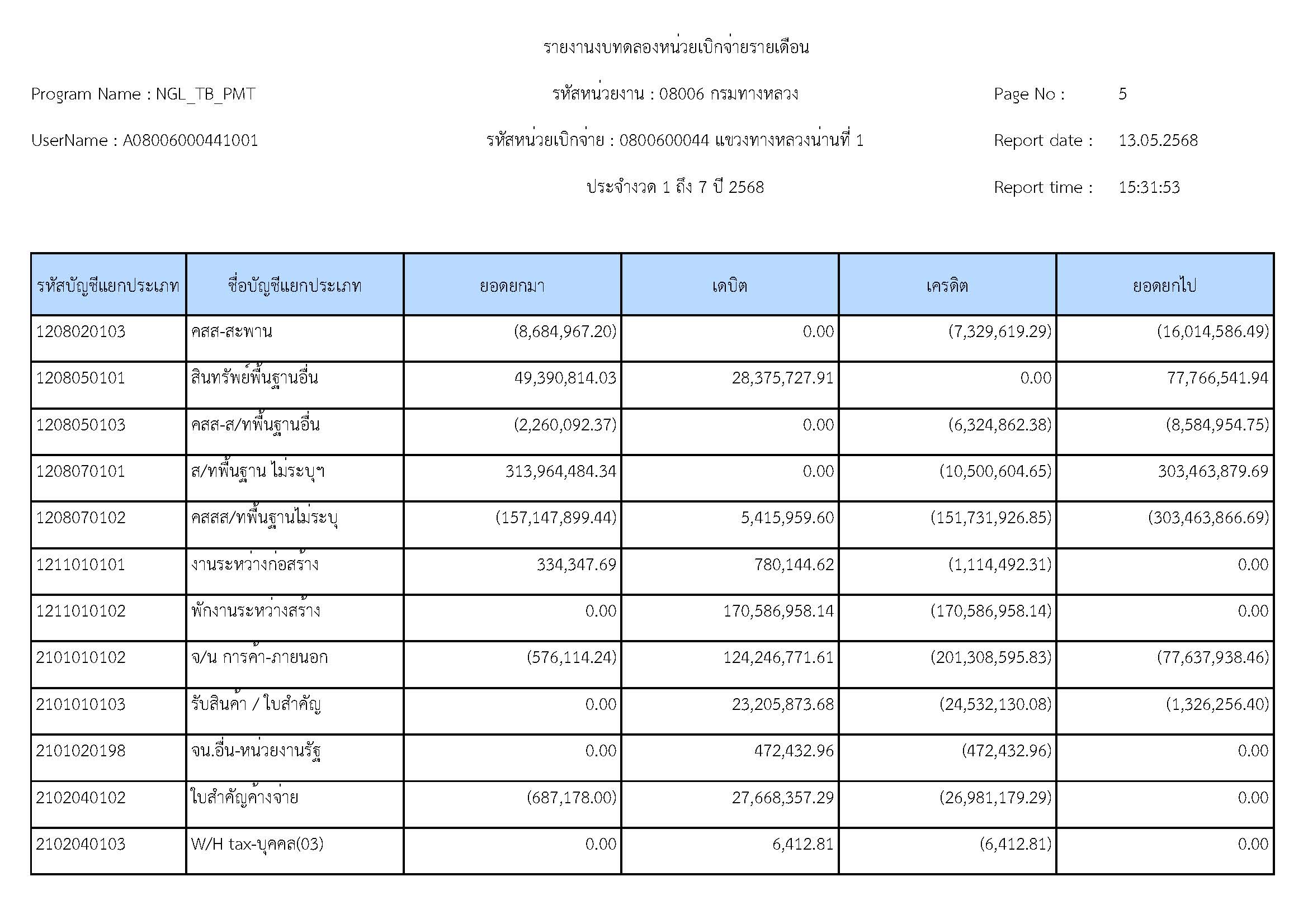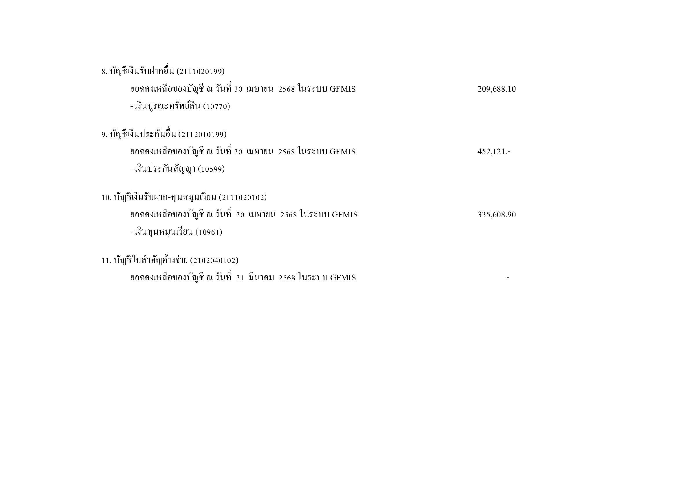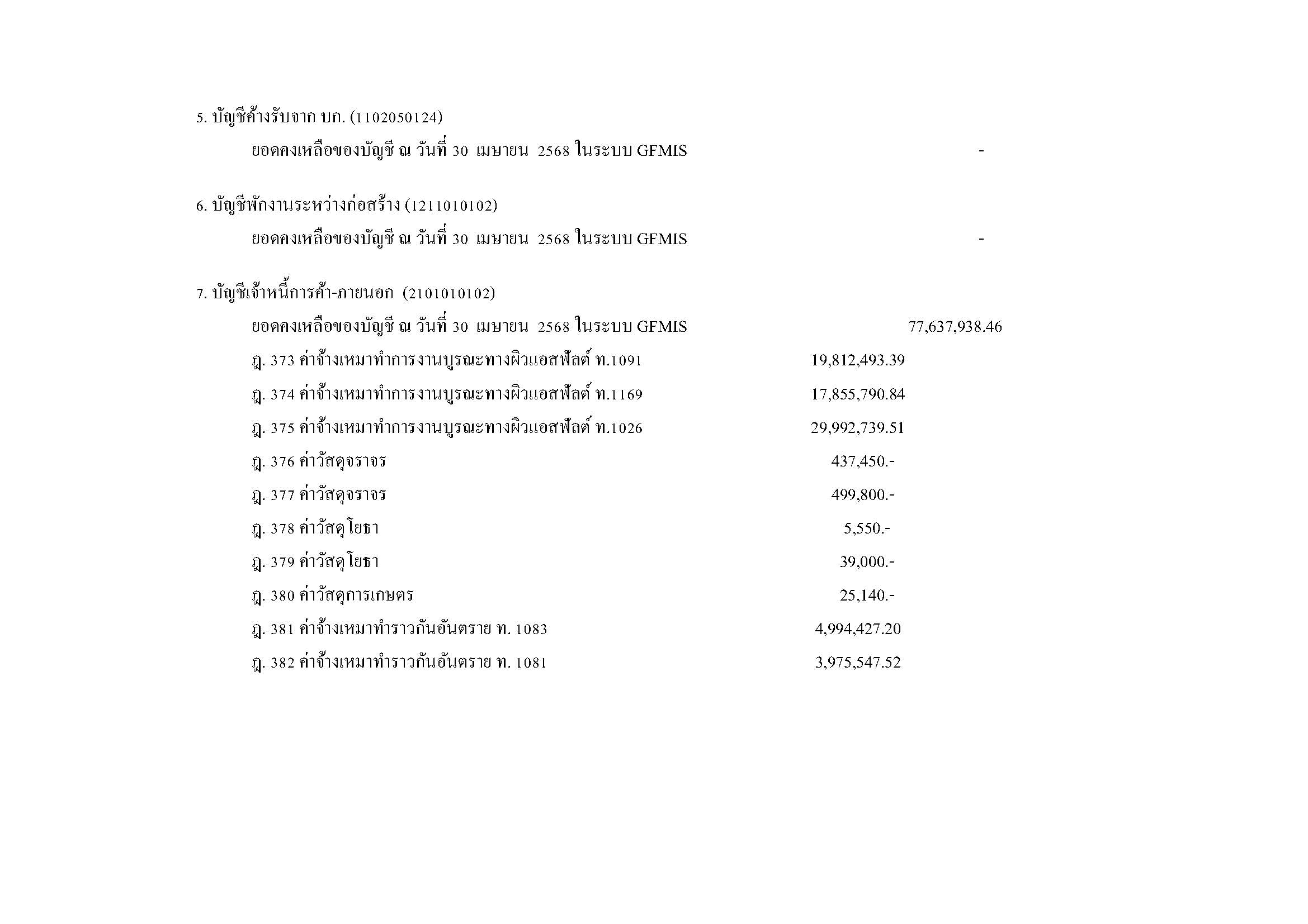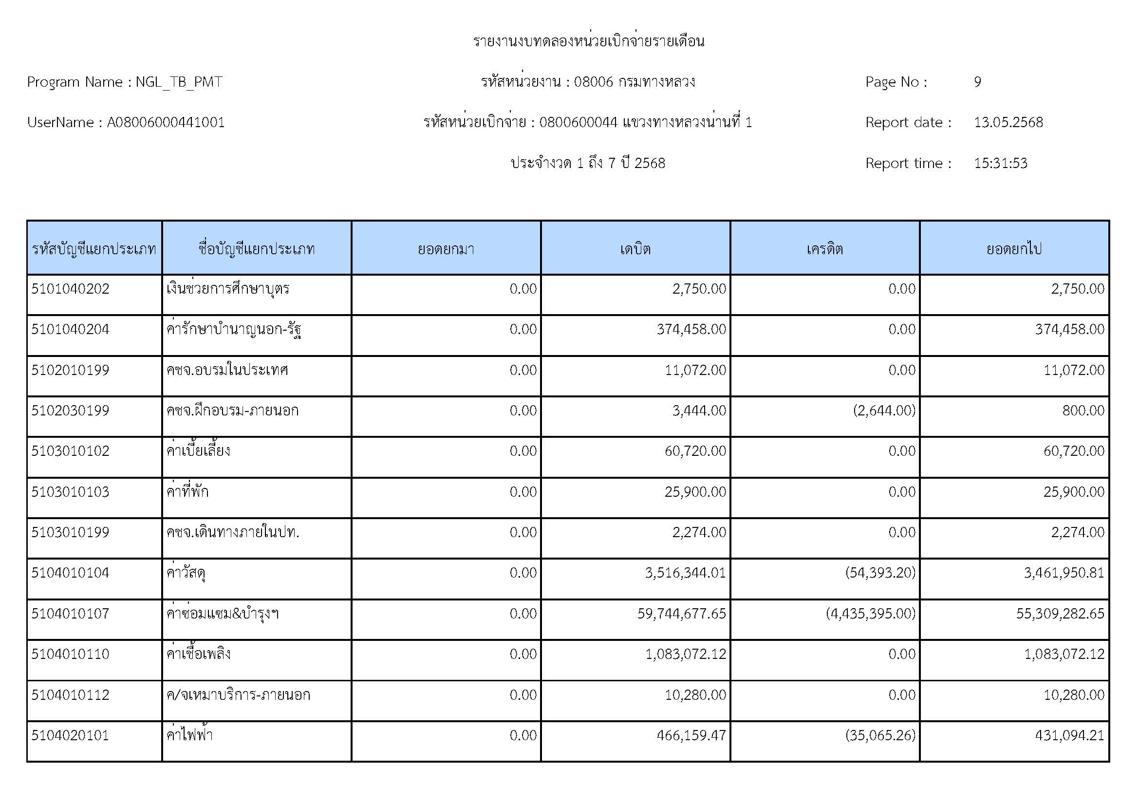 รายละเอียดประกอบรายการบัญชีที่สำคัญของงบทดลองประจำเดือนกันยายน 2568