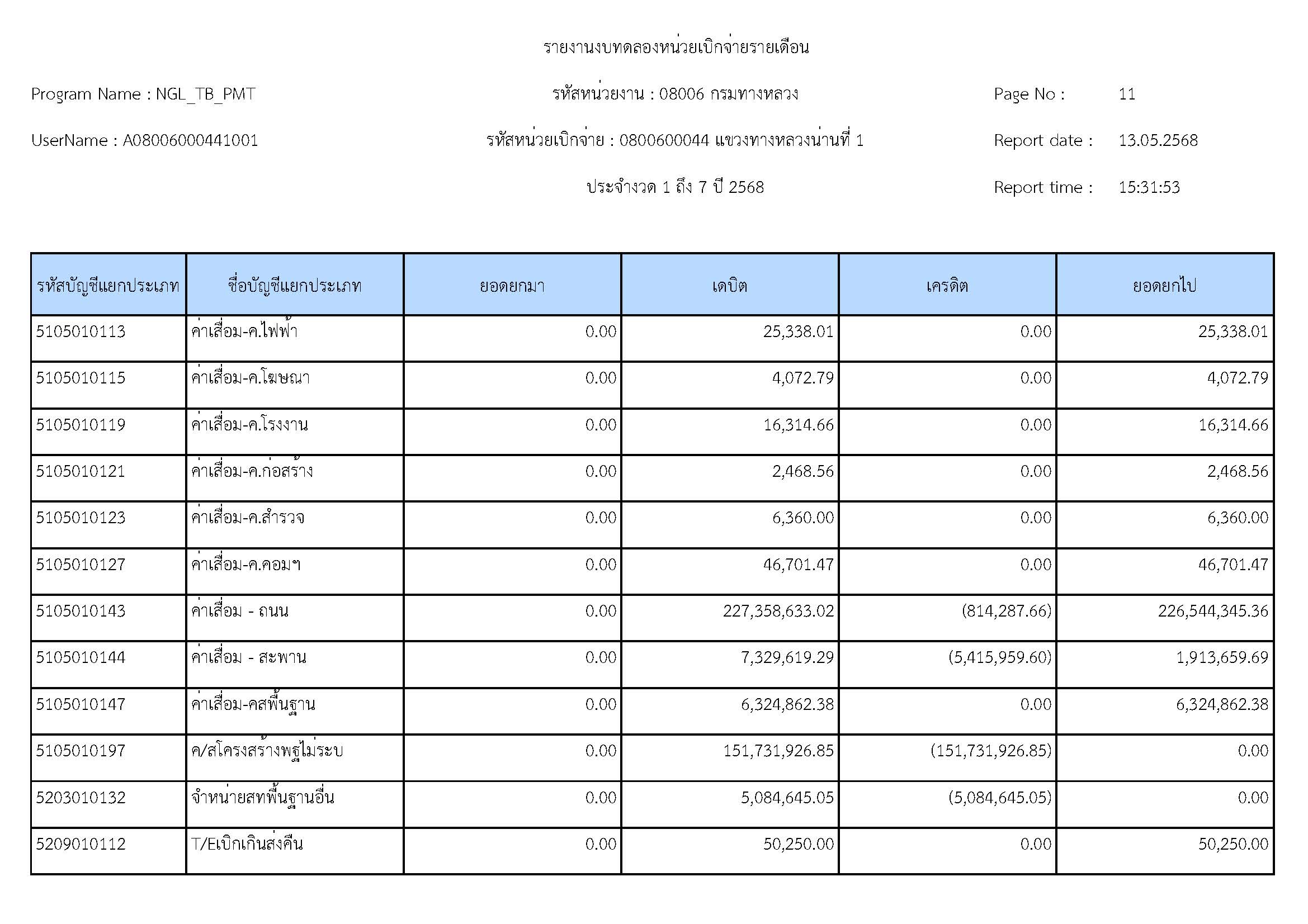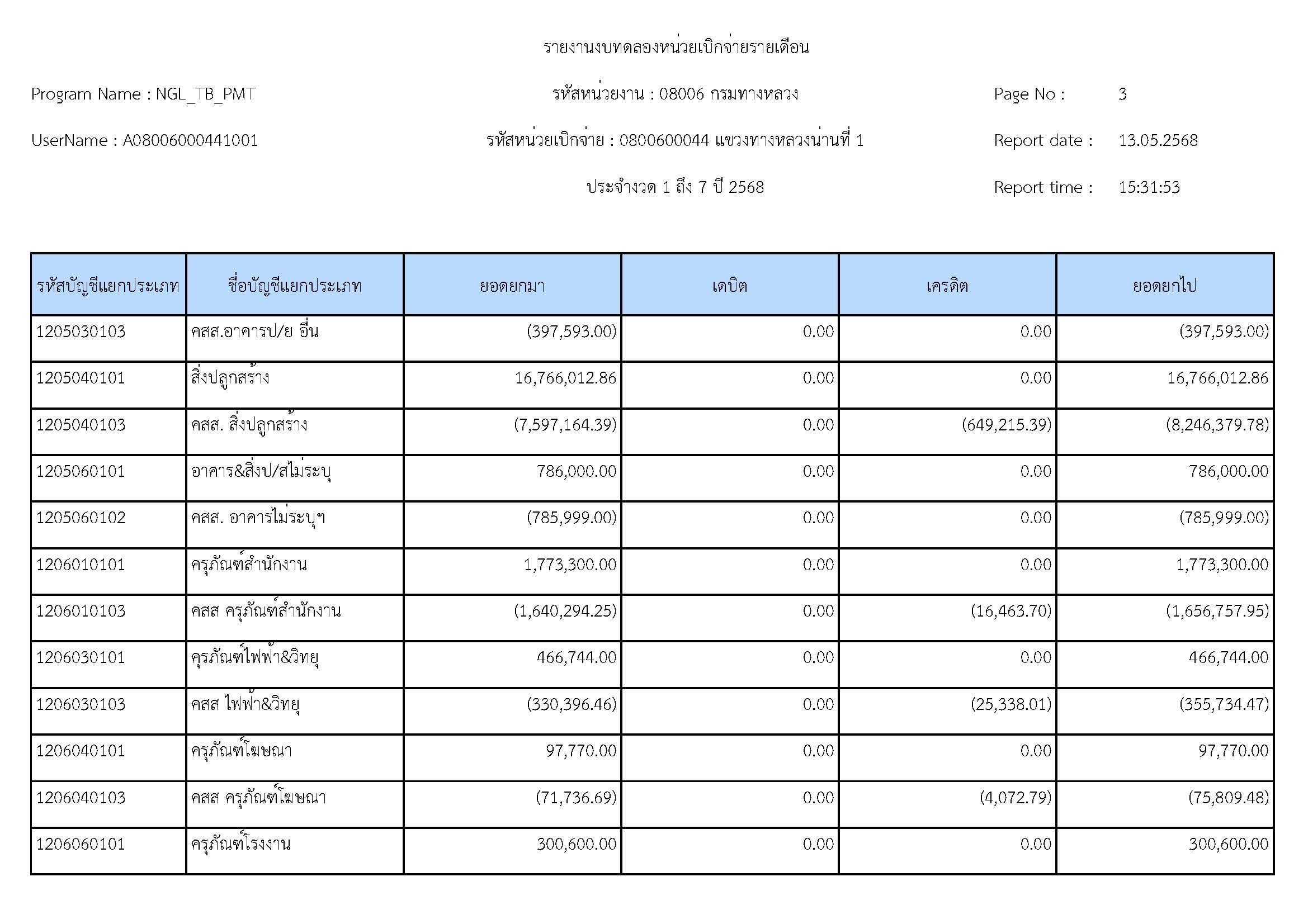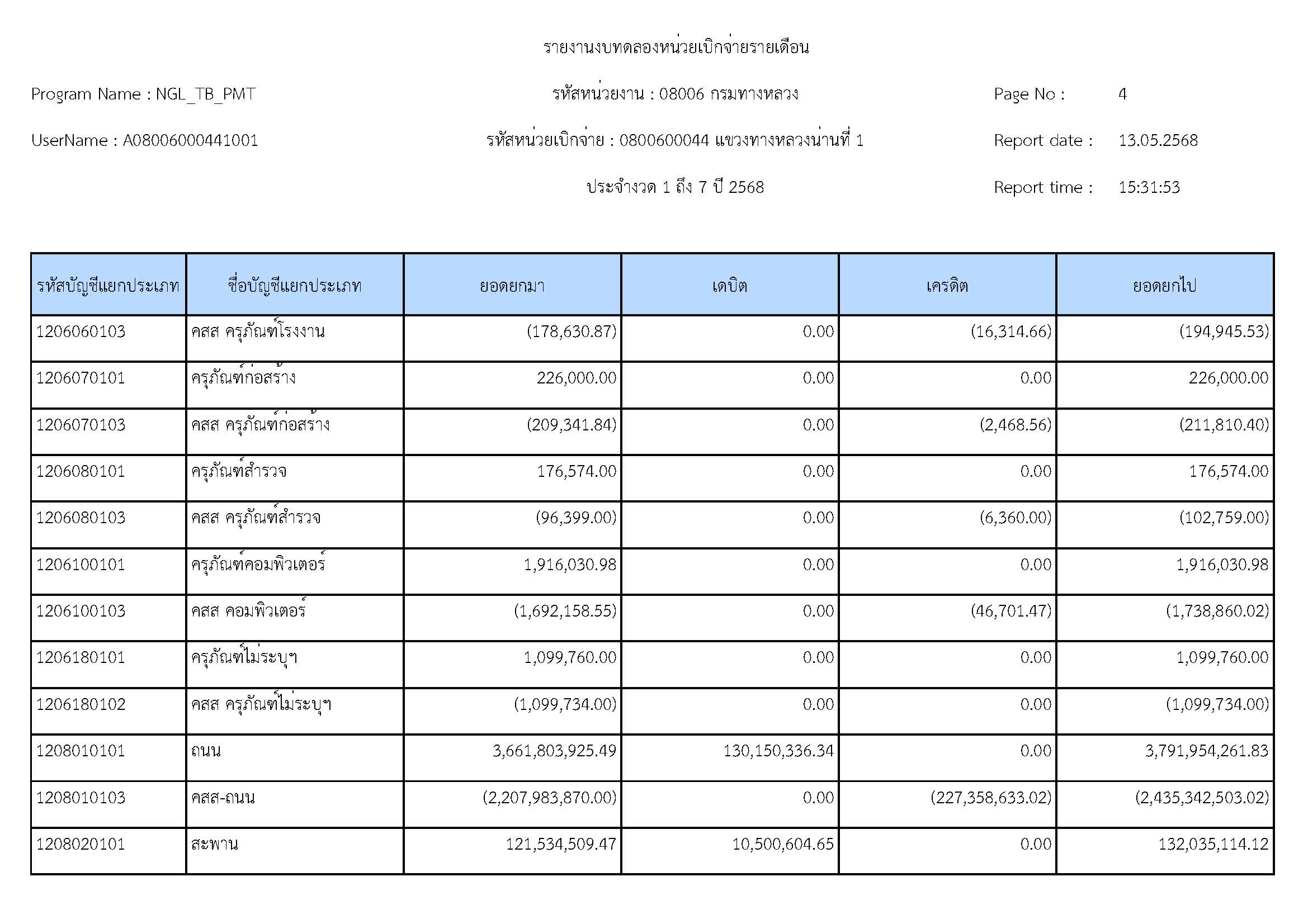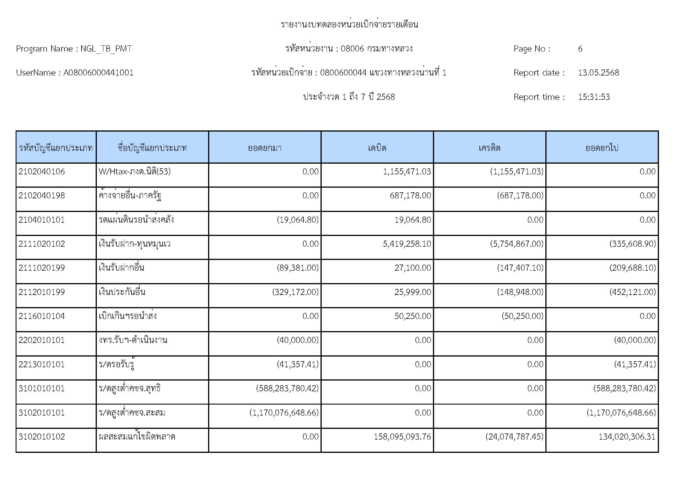 รายละเอียดประกอบรายการบัญชีที่สำคัญของงบทดลองประจำเดือนกันยายน 2568