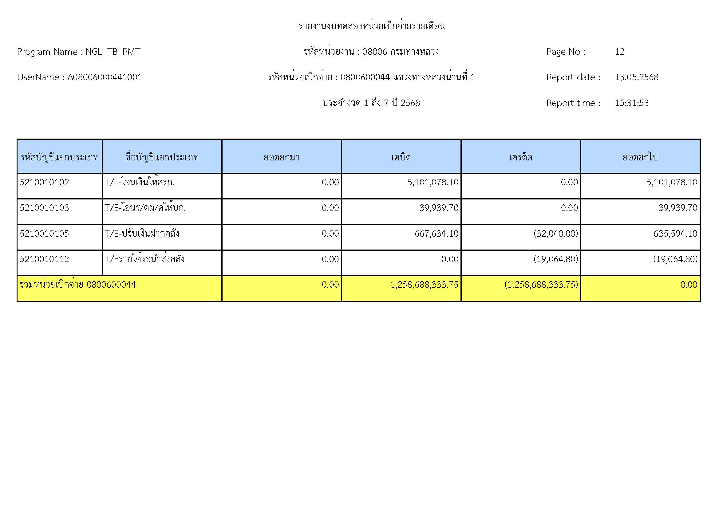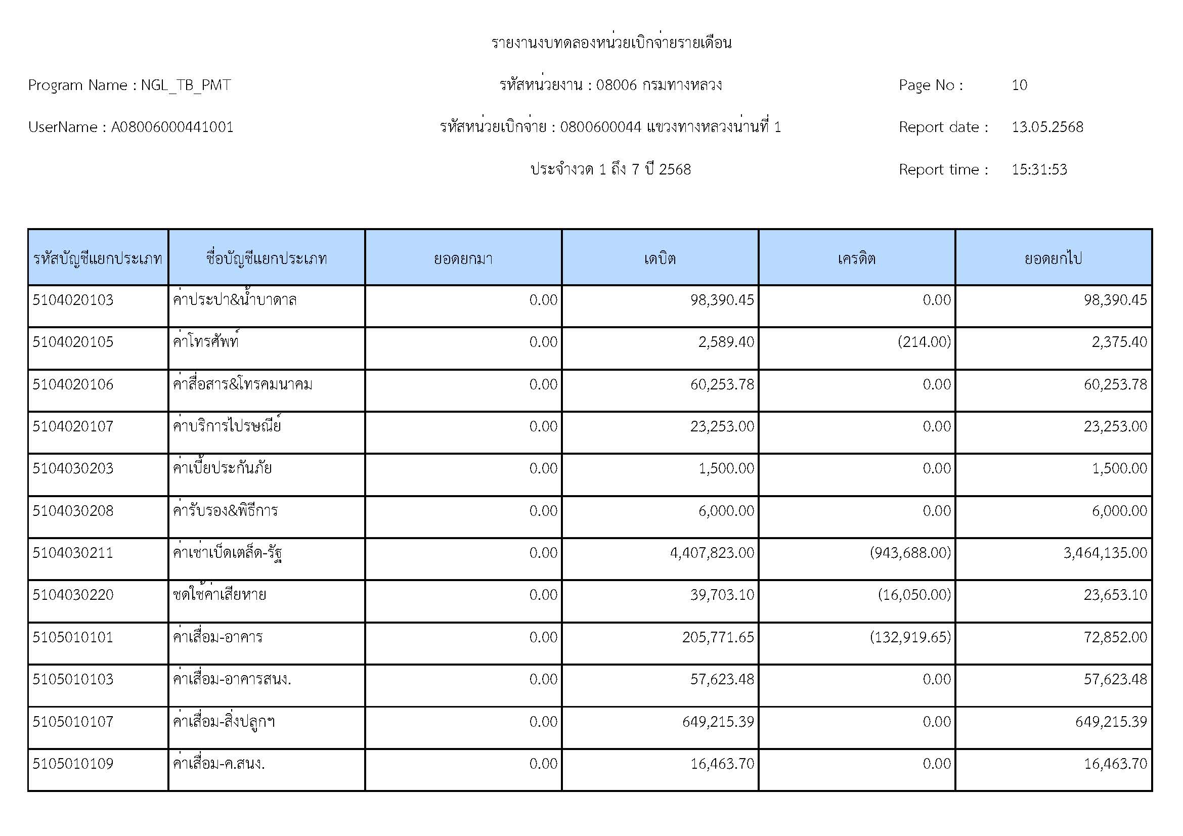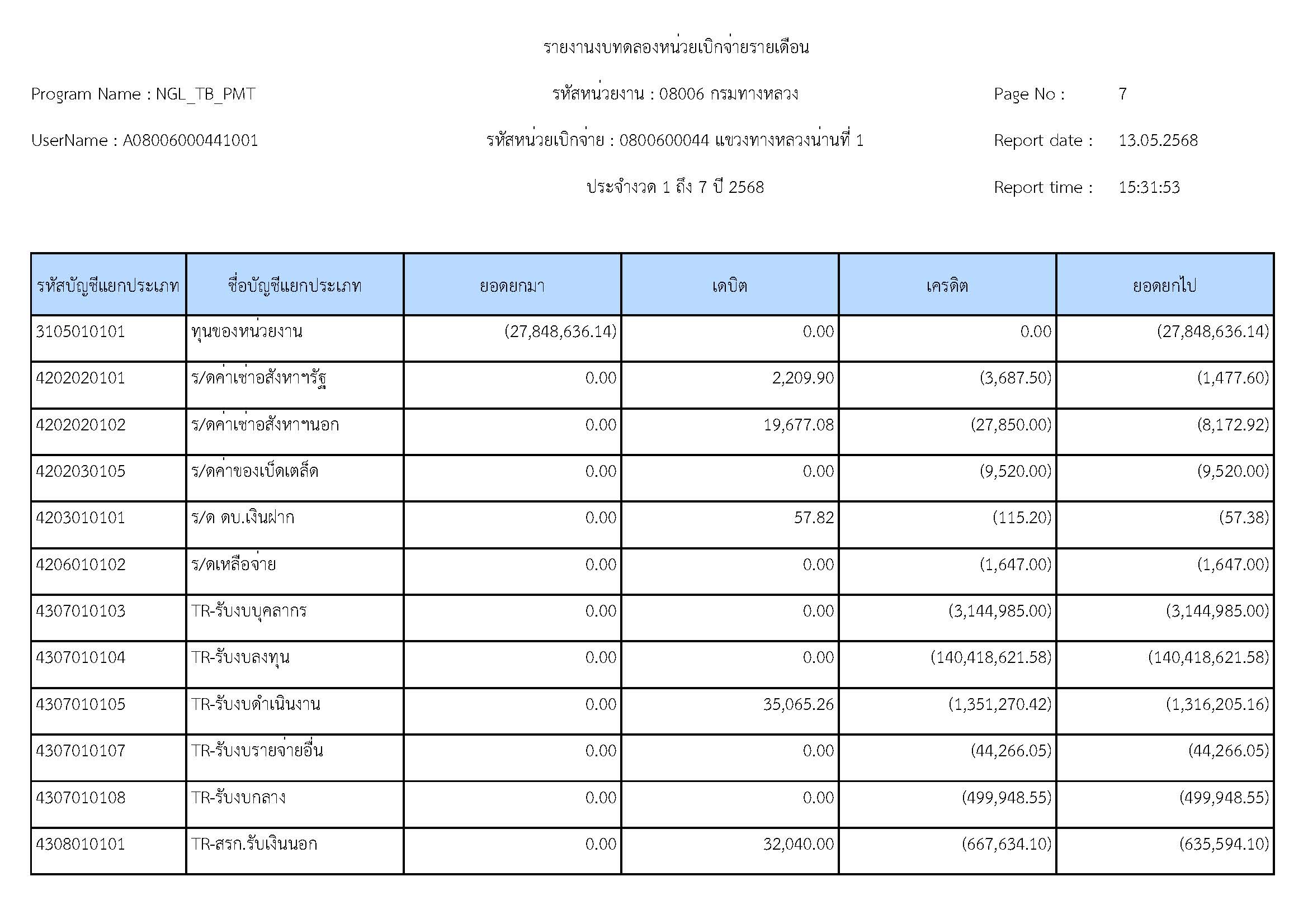 รายงานงบทดลองหน่วยเบิกจ่ายประจำปี 2565